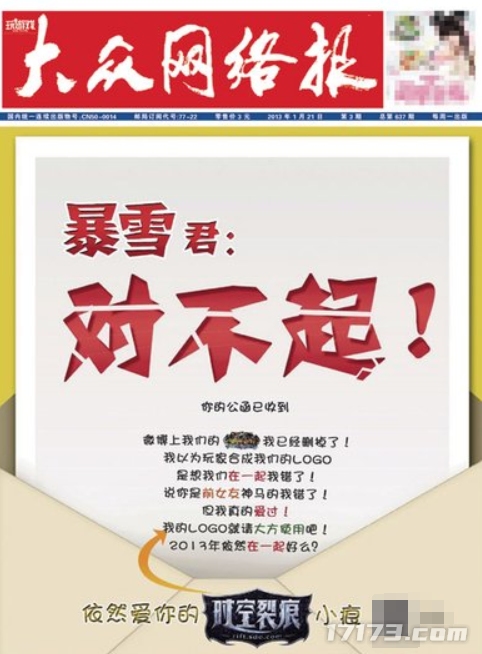 官方先是在大众网络报上隔空喊话:暴雪君,对不起!